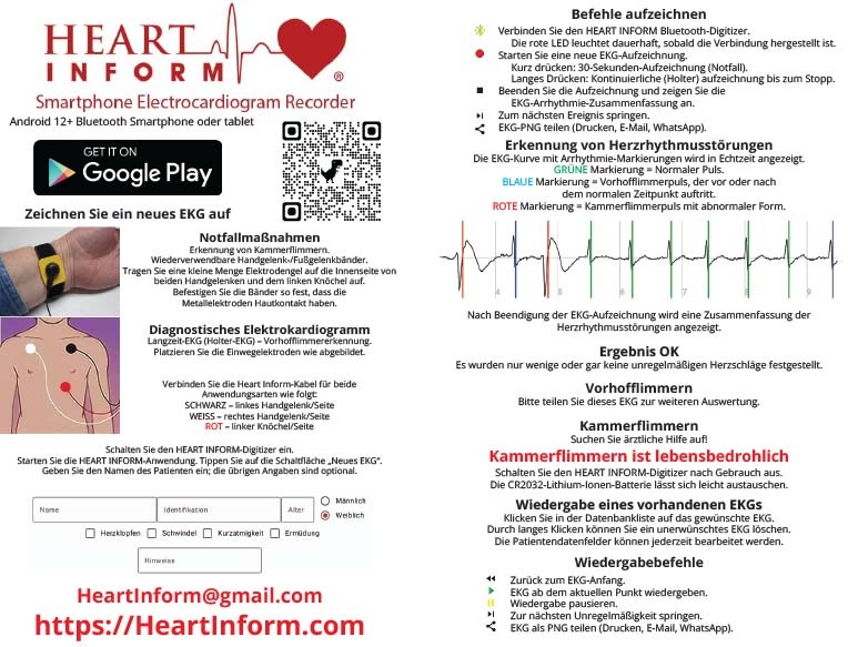 HEART INFORM no está diseñado para uso médico, está diseñado únicamente para fines generales de fitness y bienestar, y no es un dispositivo médico. El digitalizador Bluetooth HEART INFORM es necesario para registrar un nuevo ECG.