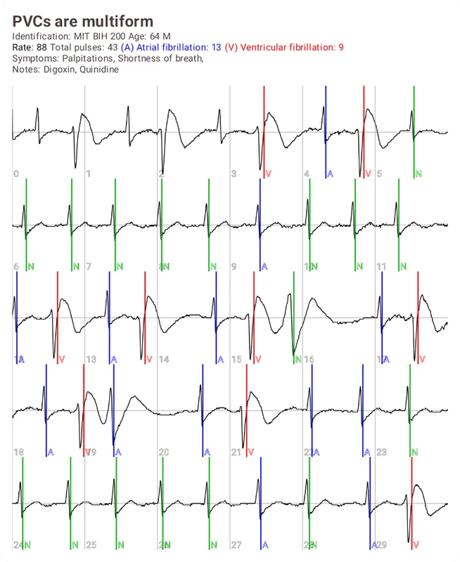 HEART INFORM es el ÚNICO ECG personal con detección inmediata de fibrilación ventricular y utiliza procesamiento avanzado de señales digitales para lograr una precisión de más del 95 % (probado exhaustivamente utilizando la base de datos de arritmia MIT-BIH).